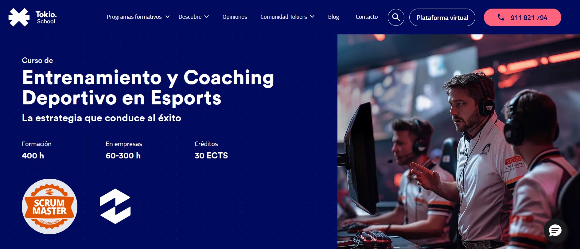 | Curso en Entrenamiento y Coaching Deportivo en Esports (Tokio School) | Online, flexible | 400h + hasta 300h de prácticas | Entrenamiento técnico, liderazgo de equipos, psicología, rendimiento, salud, entrenamiento físico | Sí (prácticas profesionales, tutorías, +200 clases en directo/mes) | Certificación Tokio School |