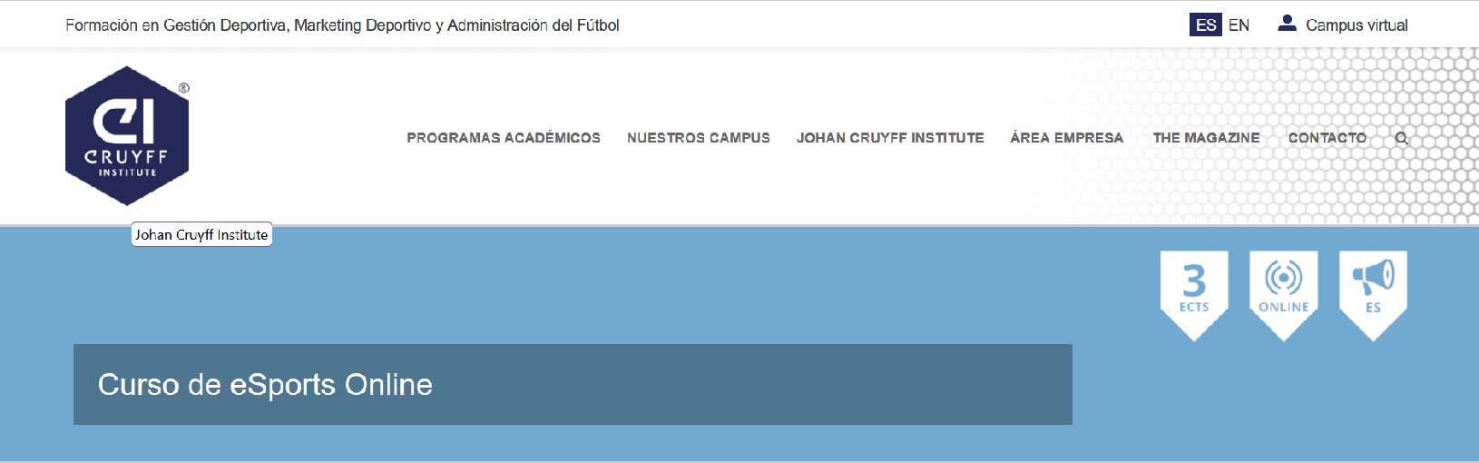 A continuación, puedes obtener más información del curso en su página: https://johancruyffinstitute.com/es/programa/curso-de-esports-online/