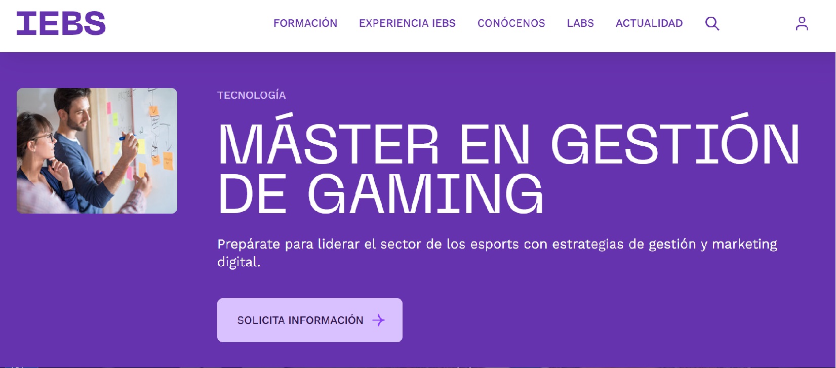 El Máster en Esports Management de IEBS (IEBS Innovation & Entrepreneurship Business School) es una formación online de 600 horas orientada a personas que quieren adquirir una formación muy específica en la gestión global de la industria de los esports.