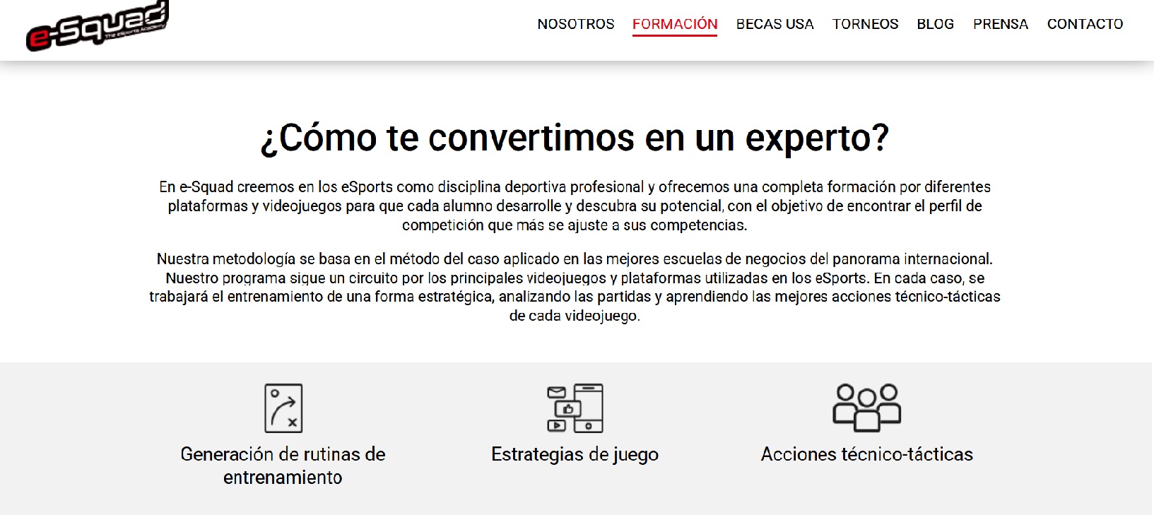 | Programas esports (e-Squad, The eSports Academy) | Presencial + entrenamientos | Variable | Formación de jugadores, competición, torneos, ligas | Entrenamiento con equipo oficial, torneos | Certificación propia |