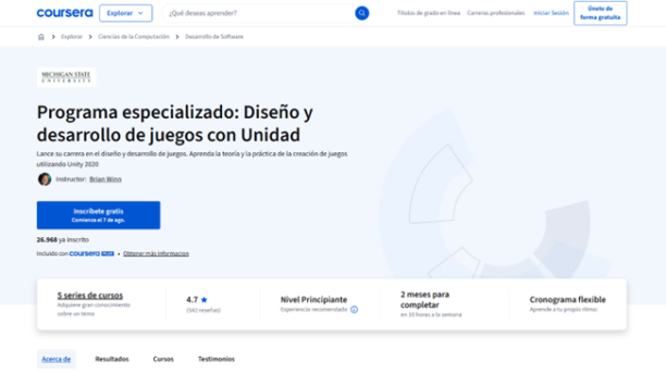 Enlace a la web: https://www.coursera.org/specializations/game-design-and-development