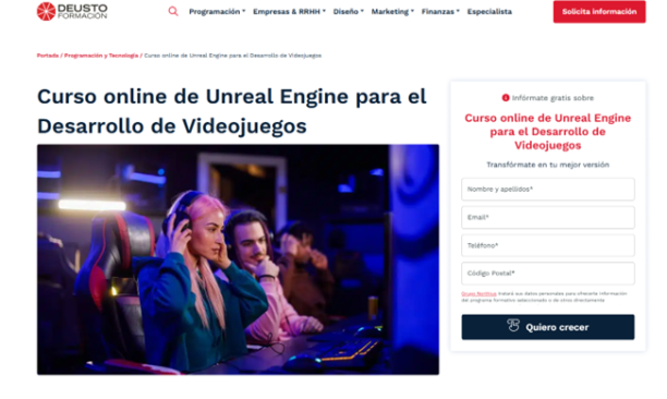 Enlace a la web: https://www.deustoformacion.com/cursos/programacion-tecnologia/curso-unreal-engine-desarrollo-videojuegos