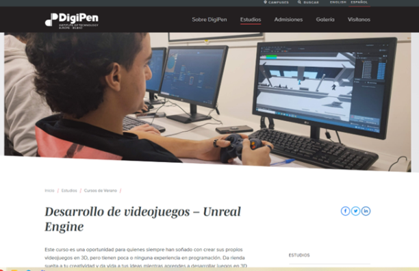 Enlace a la web: https://www.digipen.es/es/estudios/cursos-de-verano/desarrollo-de-videojuegos-unreal-engine