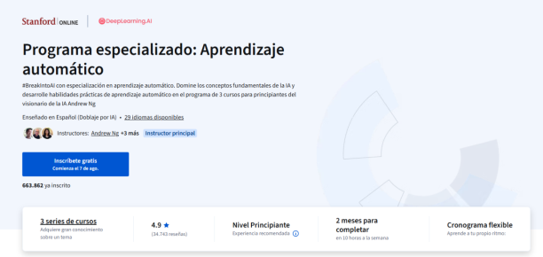 Ideal sí: buscas una base sólida en machine learning con el respaldo de una universidad de prestigio y una comunidad global de estudiantes.